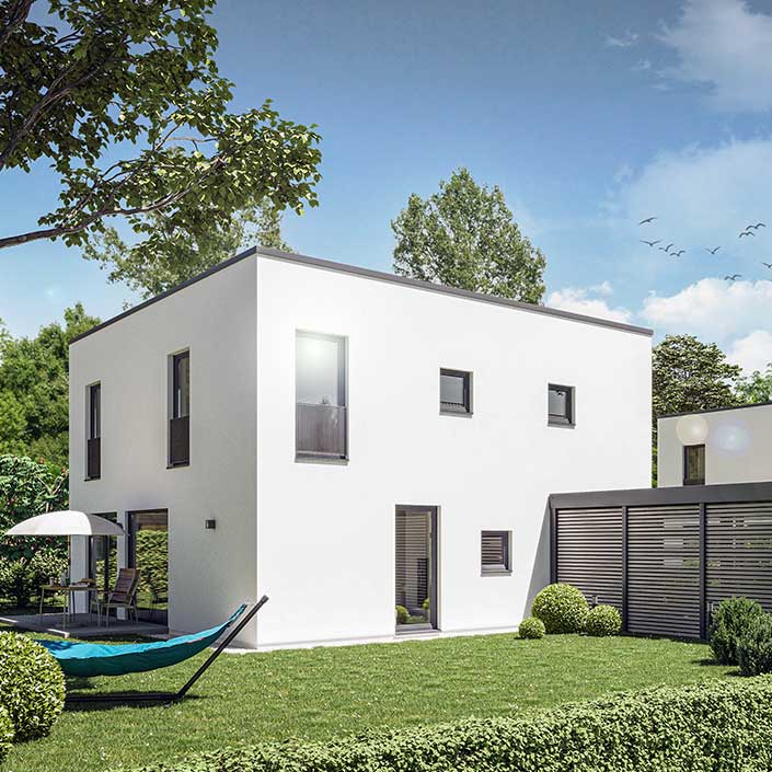 Jeder unserer vier Haustypen zeichnet sich durch eine eigene Architektur und Farbgestaltung aus. Das Einfamilienhaus EFH 01 und die Doppelhaushälften DHH 01 und DHH 02 können Sie mit und ohne Kellergeschoss erwerben. Bei der Innenausstattung können Sie unserem hochwertigen Ausstattungsmaterial zustimmen oder gleichwertige Alternativprodukte wählen.